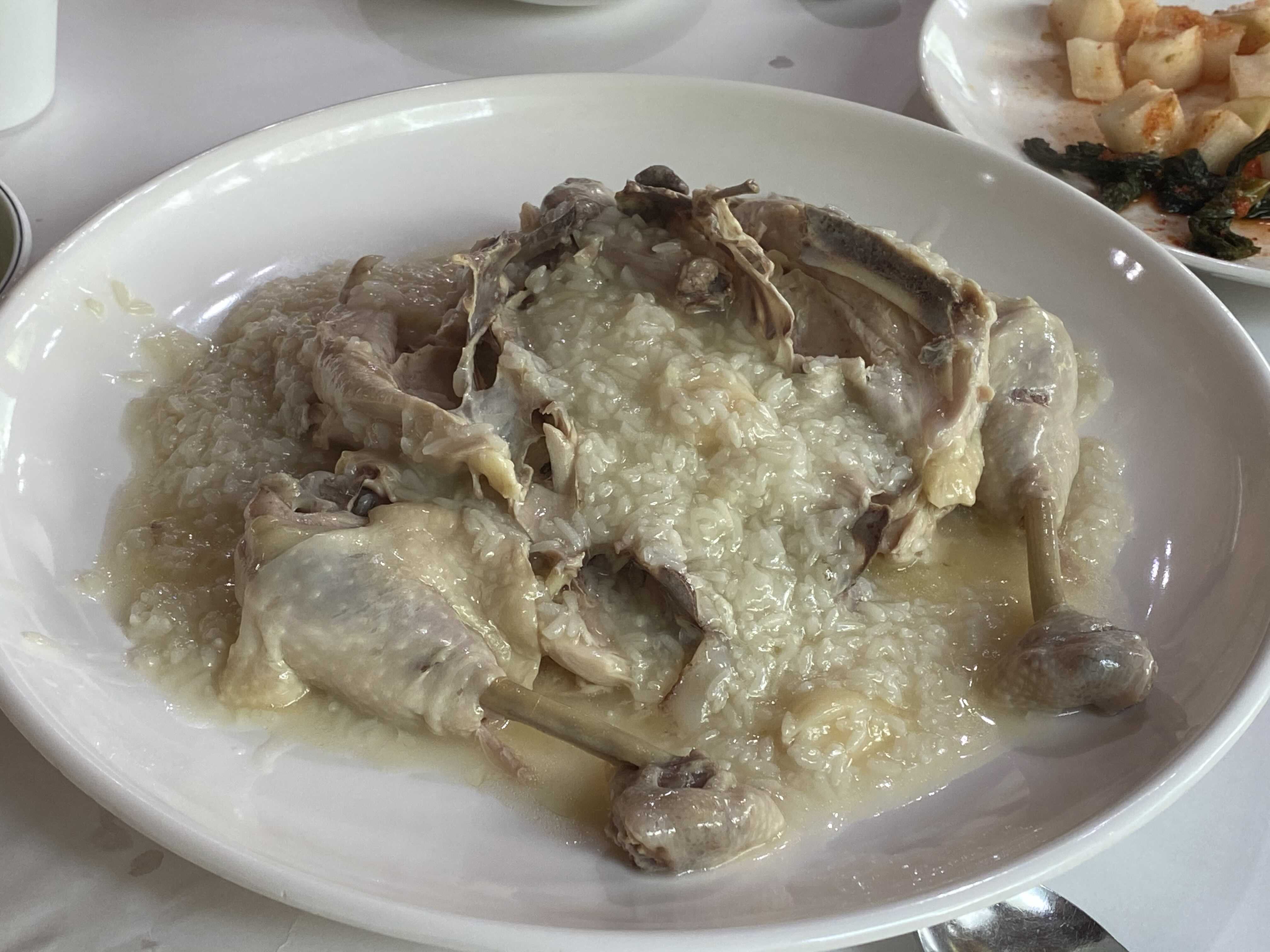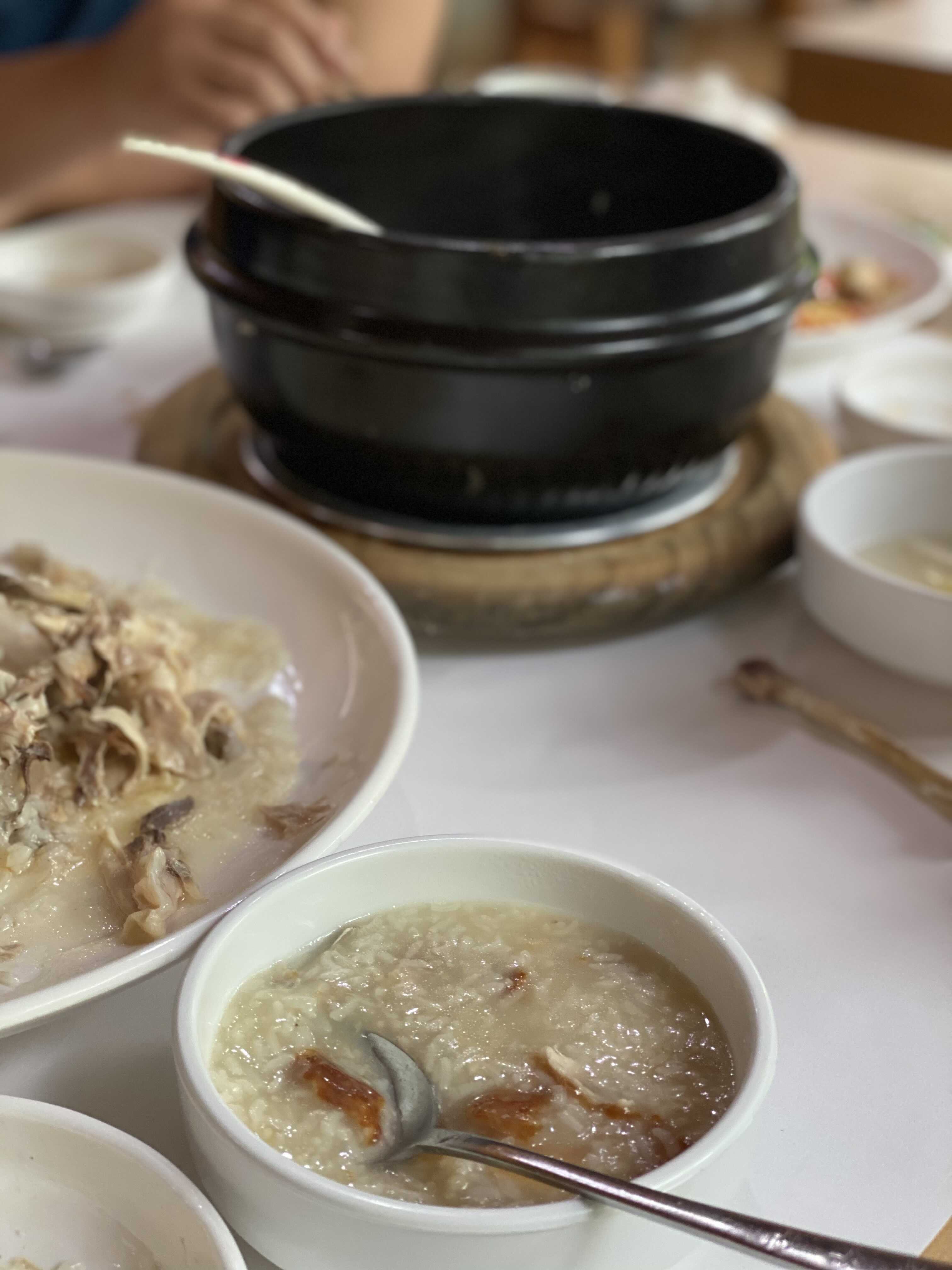 죽 사이사이 흐물러진 닭고기들도 함께 씹혀서