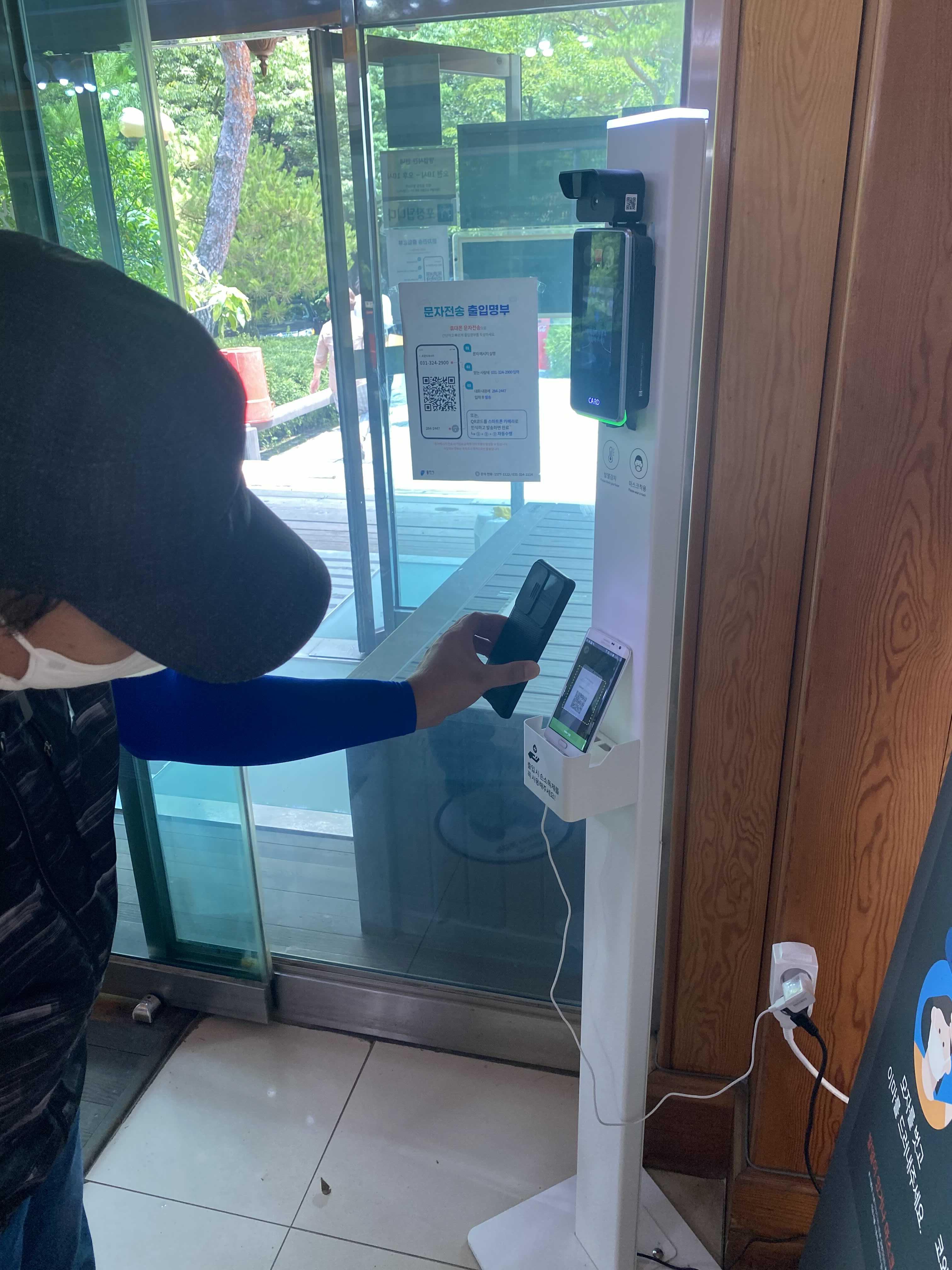큐알코드를 찍고 체온측정기에 측정도 마치고